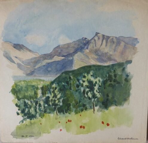 After his death in 1967, Edward’s journal, written between 1940-1946, was found together with some paintings and drawings from the same period. The writings were translated into English and, together with some of the art work, published as a book called ‘Lost Between Worlds’. The original journals, and most of the drawings and paintings are in the USHMM (United States Holocaust Memorial Museum). Click on images to enlarge.